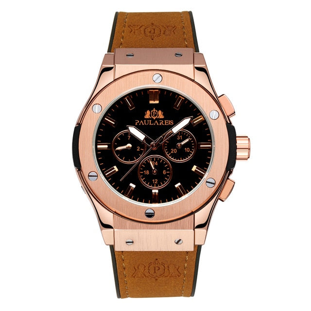 Men Automatic Self Wind Mechanical Rose Gold Silver Black Case Brown Leather Rubber Strap Casual Sports Geneve Watch